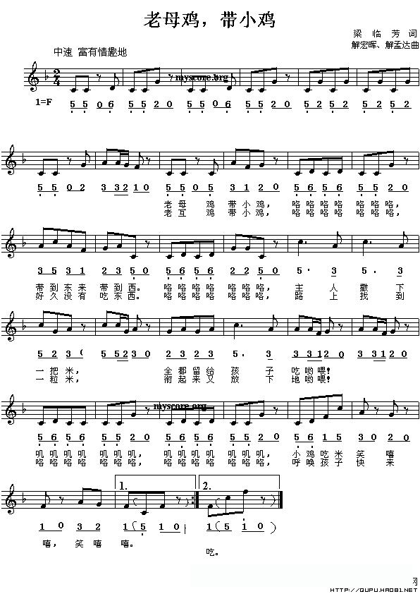 老母鸡,带小鸡(线、的简谱混排版)的简谱歌词