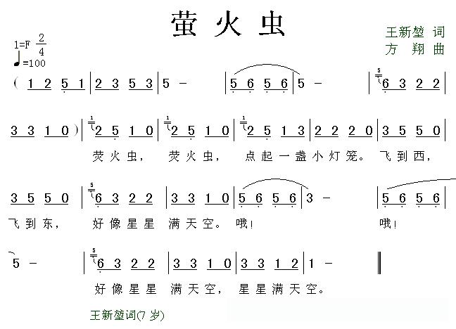 萤火虫(王新堏词 方翔曲)的简谱歌词