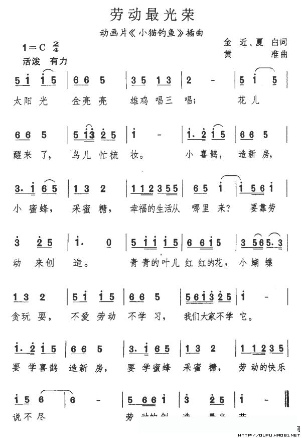 劳动最光荣(动画片《小猫钓鱼》主题歌)的简谱歌词劳动最光荣(动画片《小猫钓鱼》主题歌)的简谱歌词劳动最光荣(动画片《小猫钓鱼》主题歌)的简谱歌词