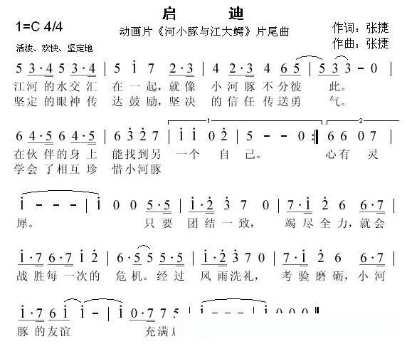 启迪(动画片《河小豚与江大鳄》片尾曲)的简谱歌词