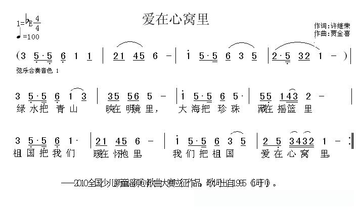 爱在心窝里(许继荣词 贾金喜曲)的简谱歌词