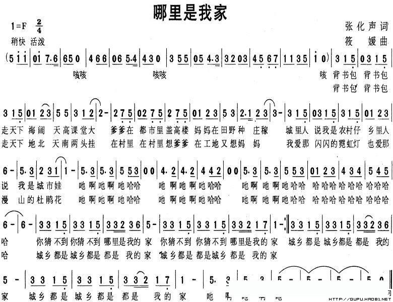 哪里是我家的简谱歌词