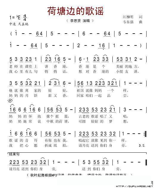 荷塘边的歌谣(江柳明词 韦东强曲)的简谱歌词