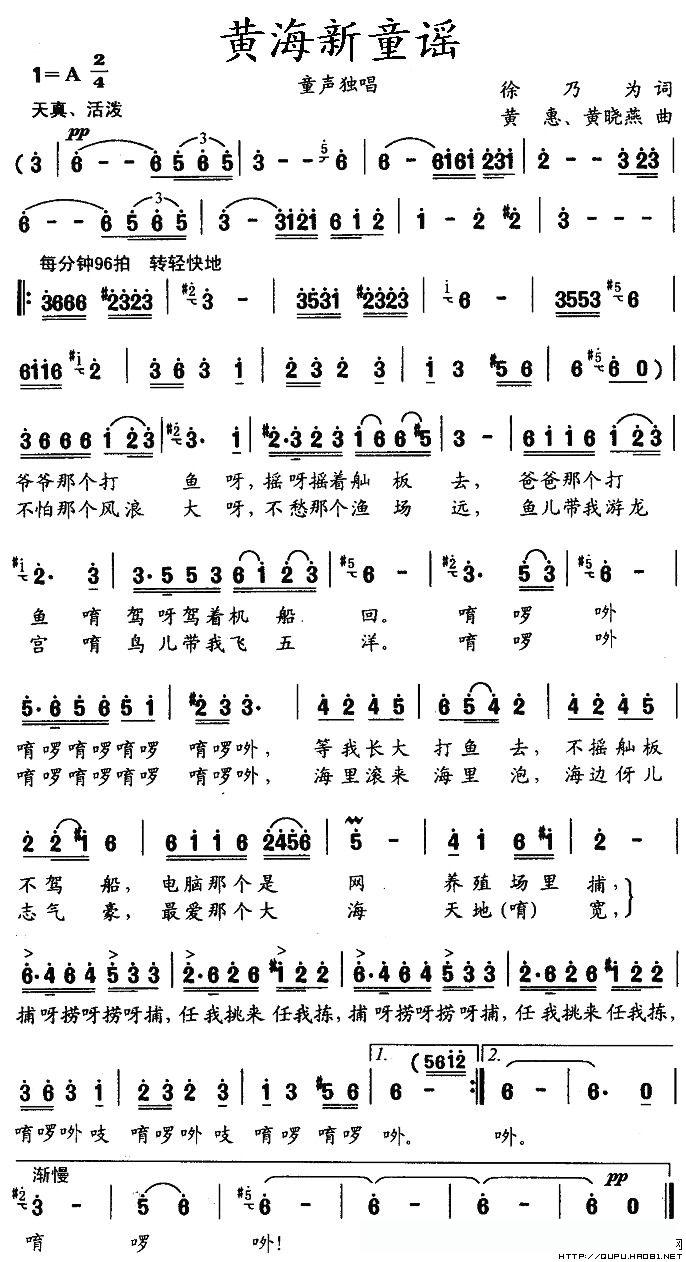 黄海新童谣的简谱歌词