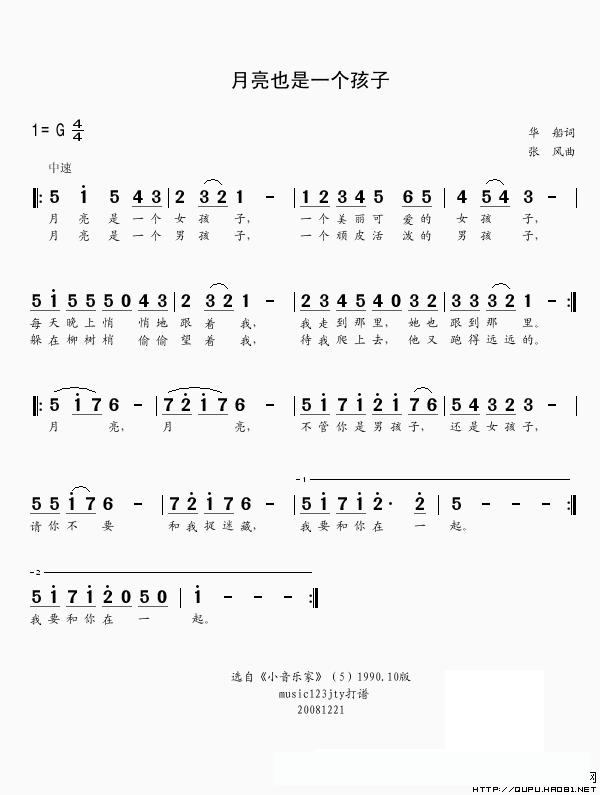 月亮也是一个孩子的简谱歌词