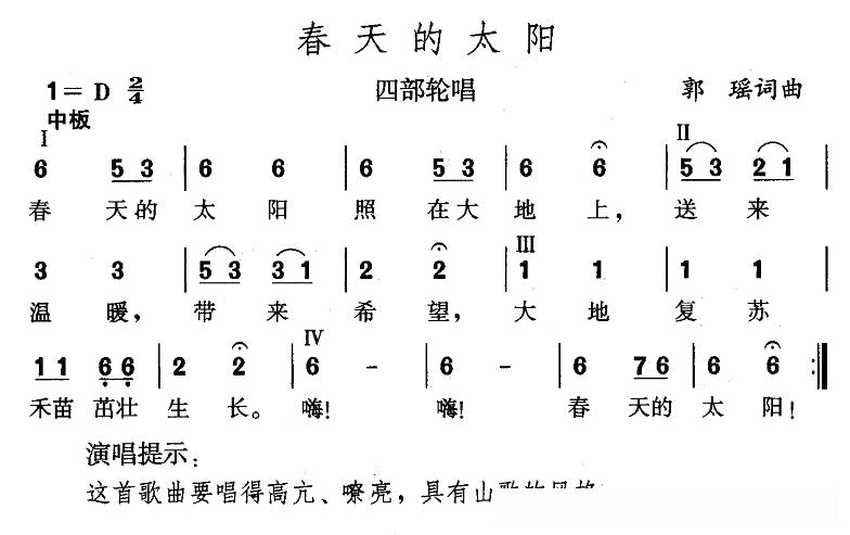 春天的太阳(郭瑶词 郭瑶曲)的简谱歌词