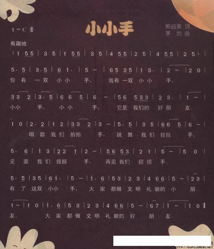小小手(熊益美词 茅地曲)的简谱歌词