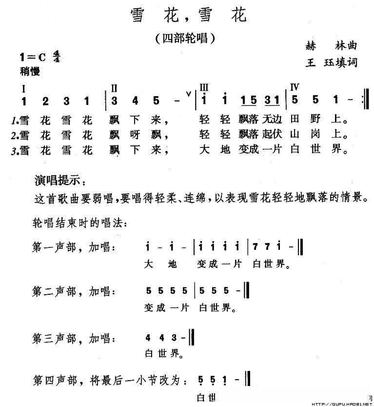 雪花,雪花(王珏词 郝林曲)的简谱歌词