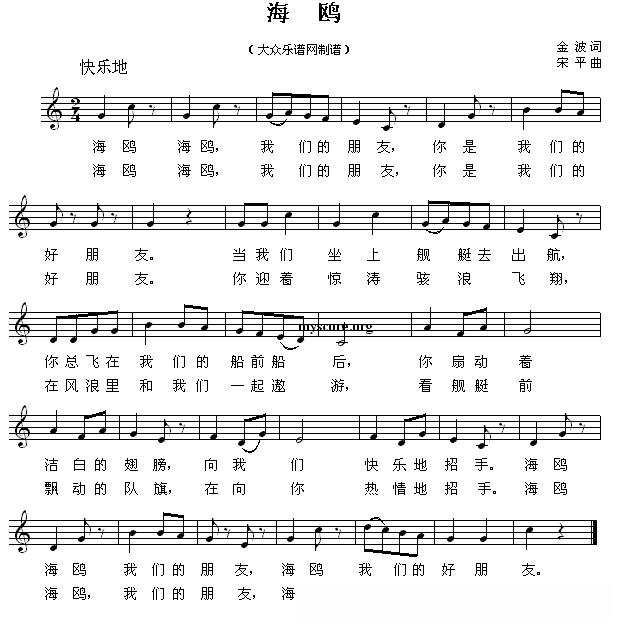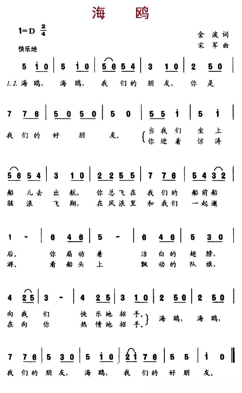 海鸥(金波词 宋军曲)的简谱歌词海鸥(金波词 宋军曲)的简谱歌词海鸥(金波词 宋军曲)的简谱歌词海鸥(金波词 宋军曲)的简谱歌词