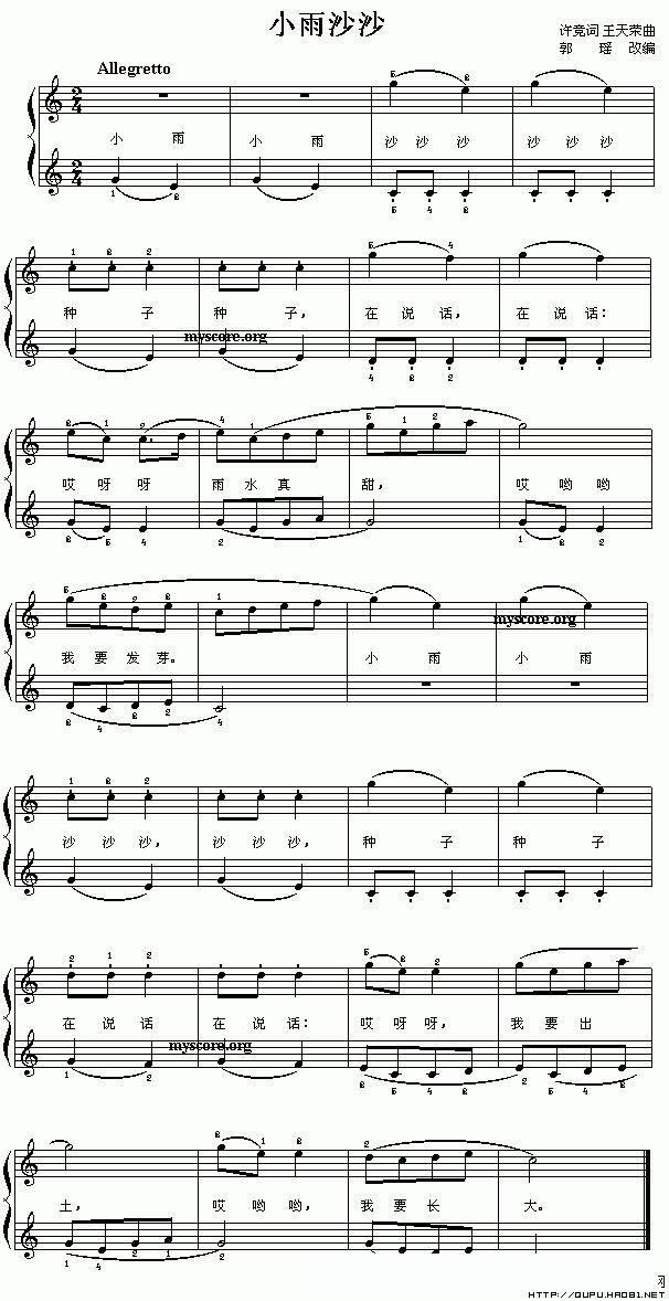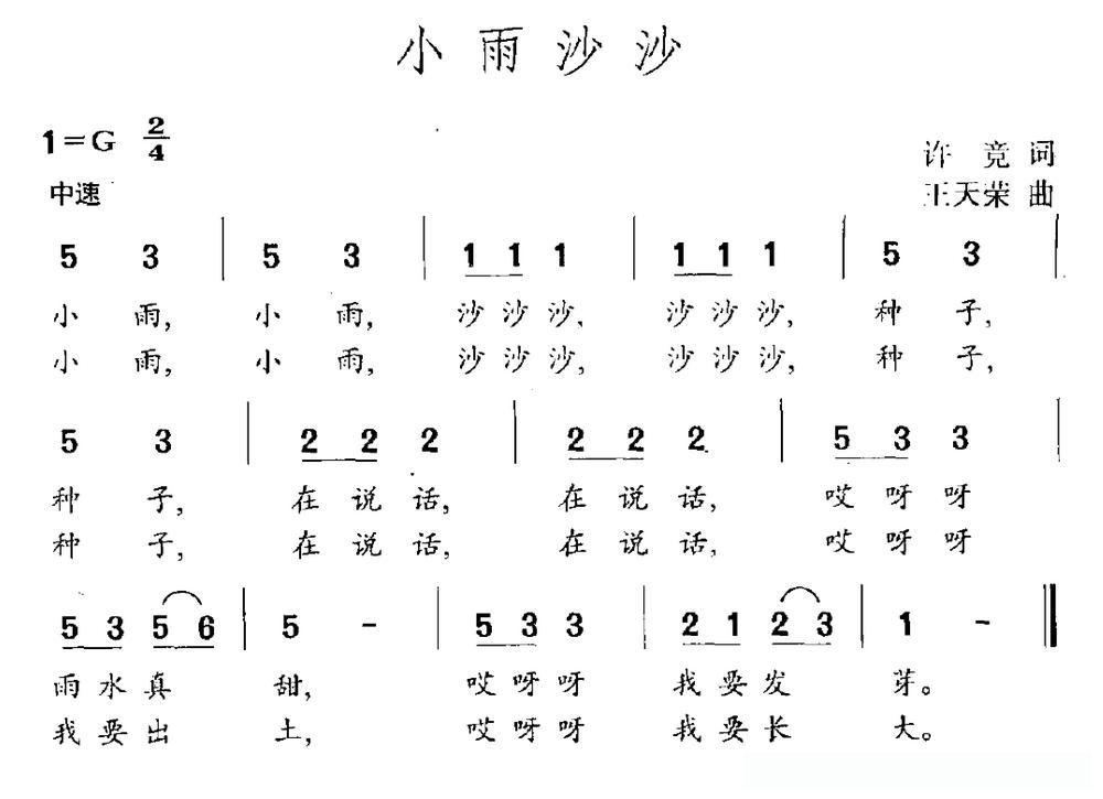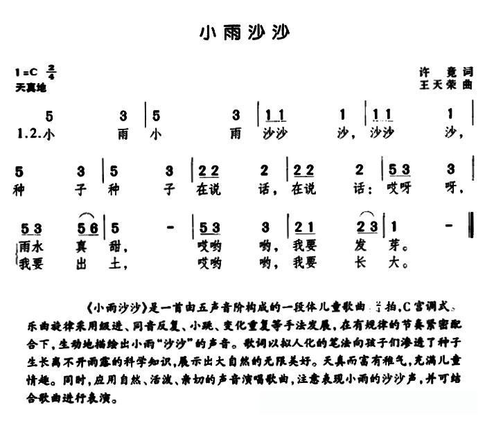 小雨沙沙(许竞词 王天荣曲)的简谱歌词小雨沙沙(许竞词 王天荣曲)的简谱歌词小雨沙沙(许竞词 王天荣曲)的简谱歌词