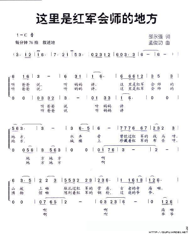 这里是红军会师的地方的简谱歌词这里是红军会师的地方的简谱歌词