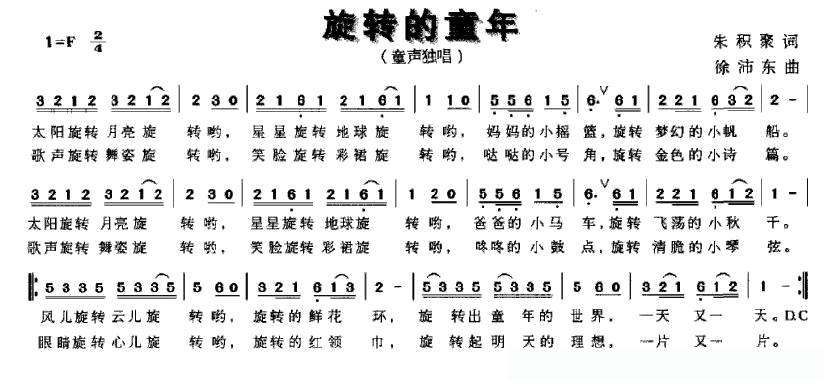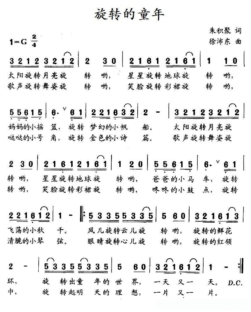 旋转的童年(朱积聚词 徐沛东曲)的简谱歌词旋转的童年(朱积聚词 徐沛东曲)的简谱歌词