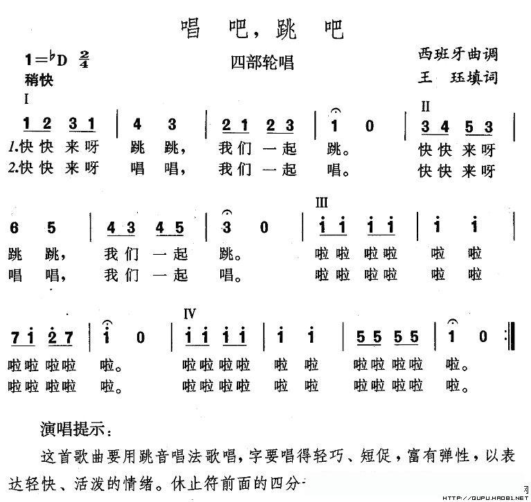 唱吧,跳吧的简谱歌词