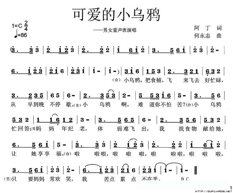 可爱的小乌鸦(阿丁词 何永志曲)的简谱歌词