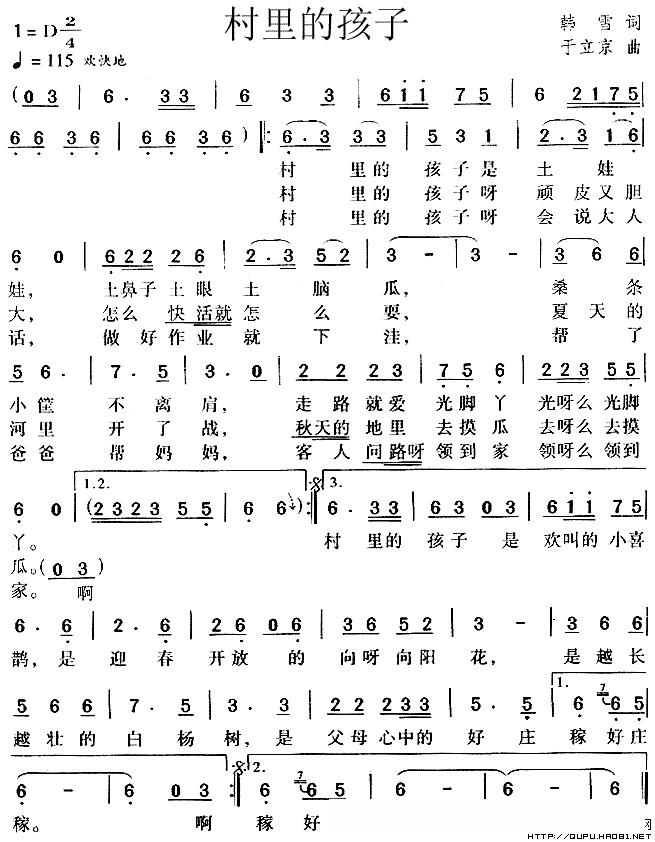 村里的孩子的简谱歌词