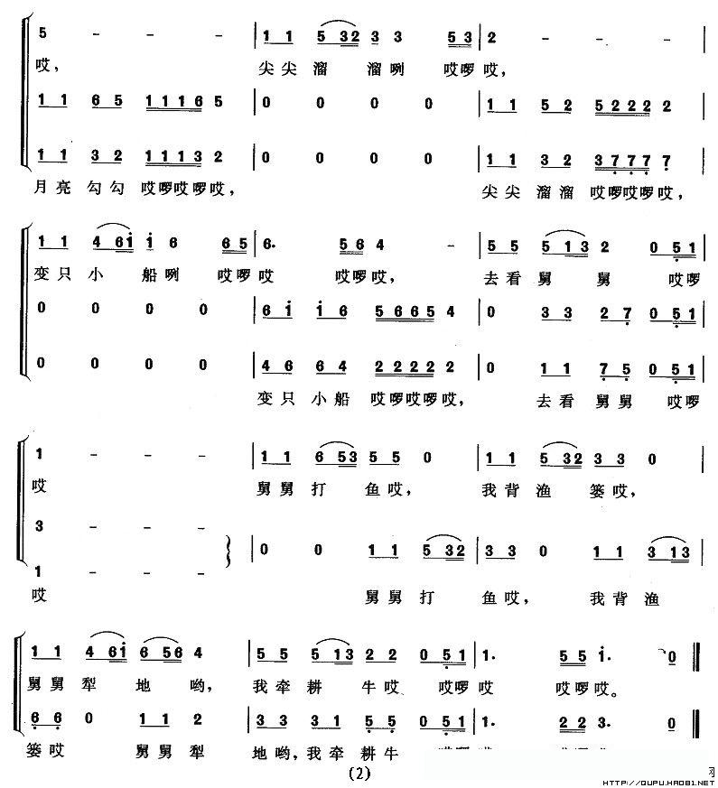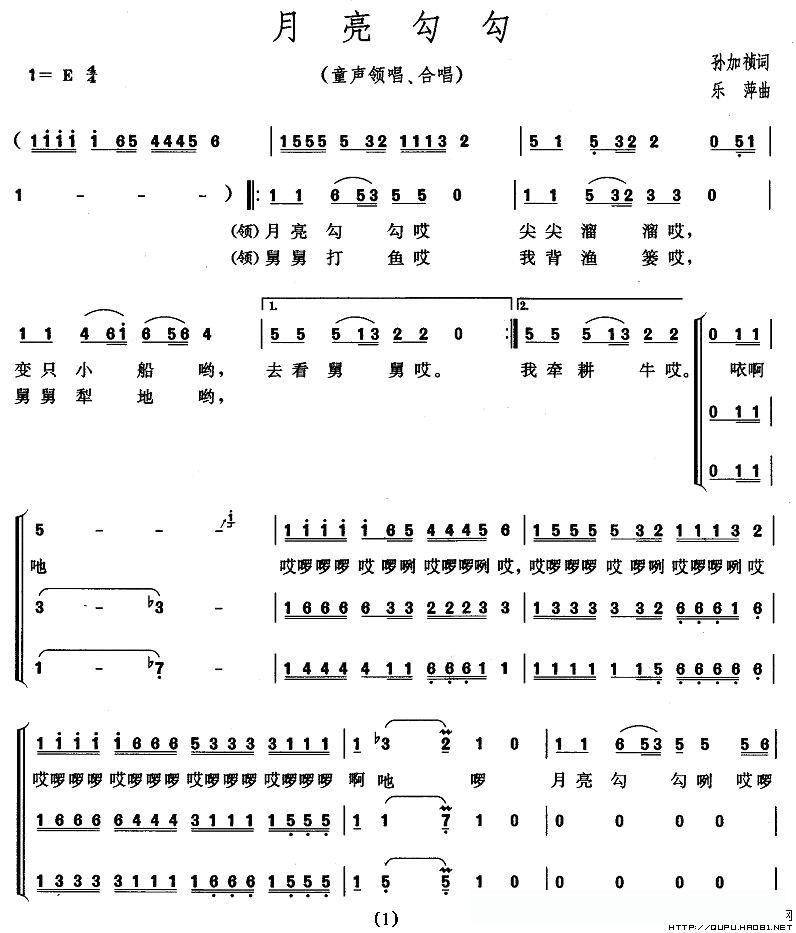 月亮勾勾(领唱、合唱)的简谱歌词月亮勾勾(领唱、合唱)的简谱歌词