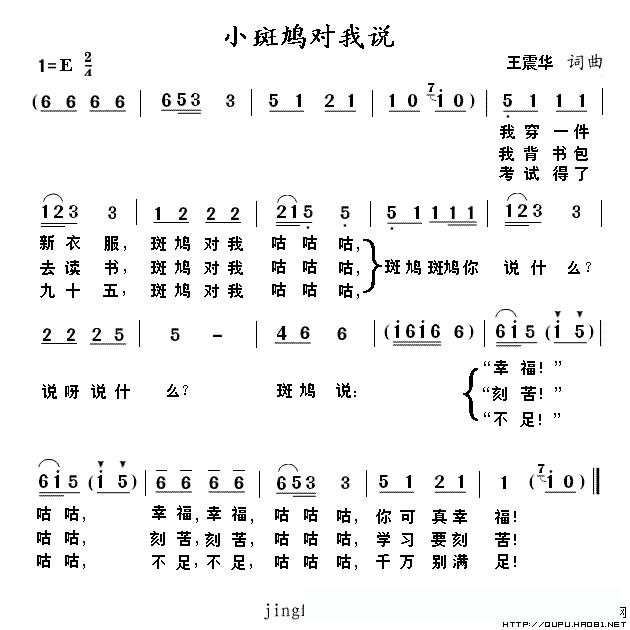 小斑鸠对我说(王震华词 王震华曲)的简谱歌词