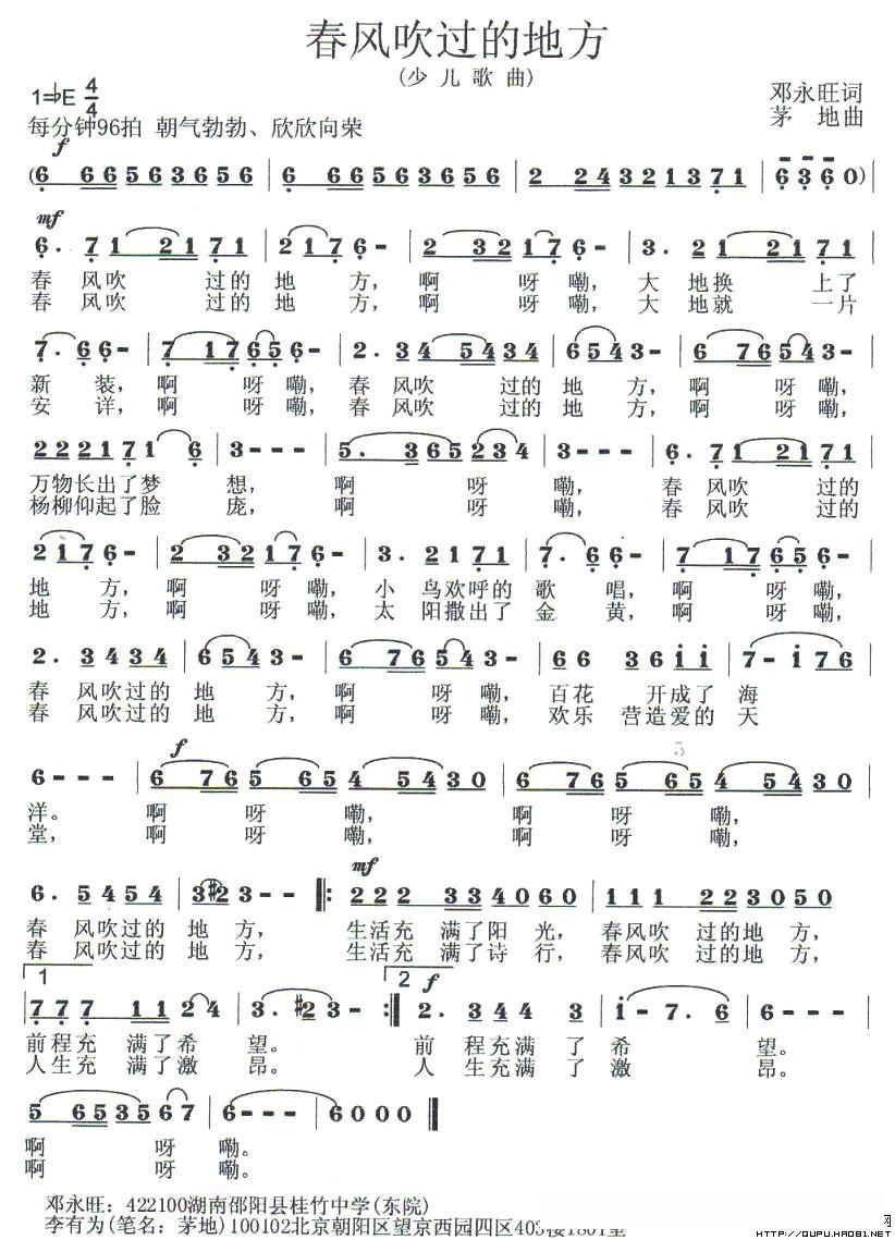 春风吹过的地方(邓永旺词 茅地曲)的简谱歌词