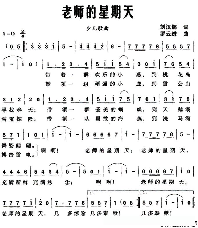 老师的星期天的简谱歌词
