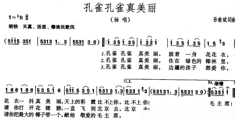 孔雀孔雀真美丽的简谱歌词