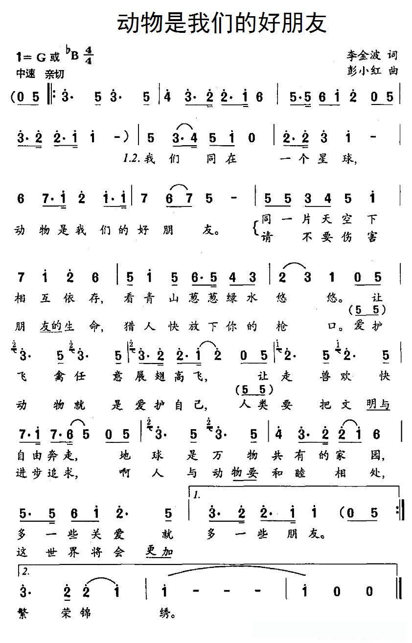 动物是我们的好朋友的简谱歌词动物是我们的好朋友的简谱歌词