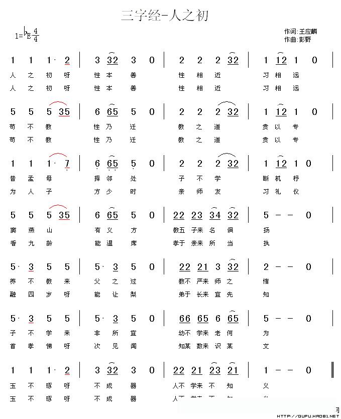 三字经—人之初的简谱歌词