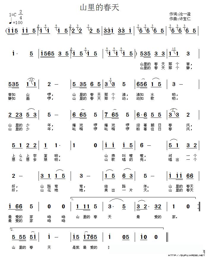 山里的春天(沧一澄词 许宝仁曲)的简谱歌词