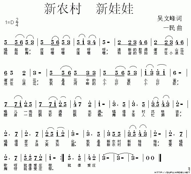 新农村新娃娃(吴文峰词 一民曲)的简谱歌词