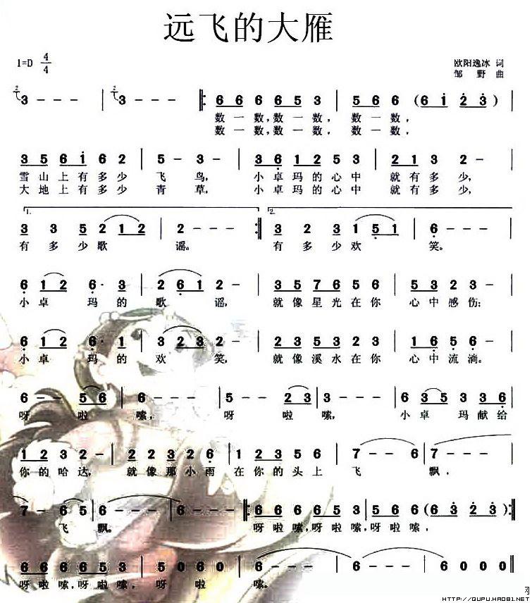 远飞的大雁(欧阳逸冰词 邹野曲)的简谱歌词