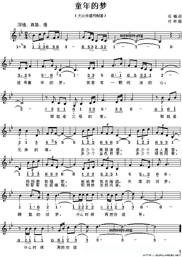 童年的梦(石楠词 付林曲 [线、的简谱混排版])的简谱歌词
