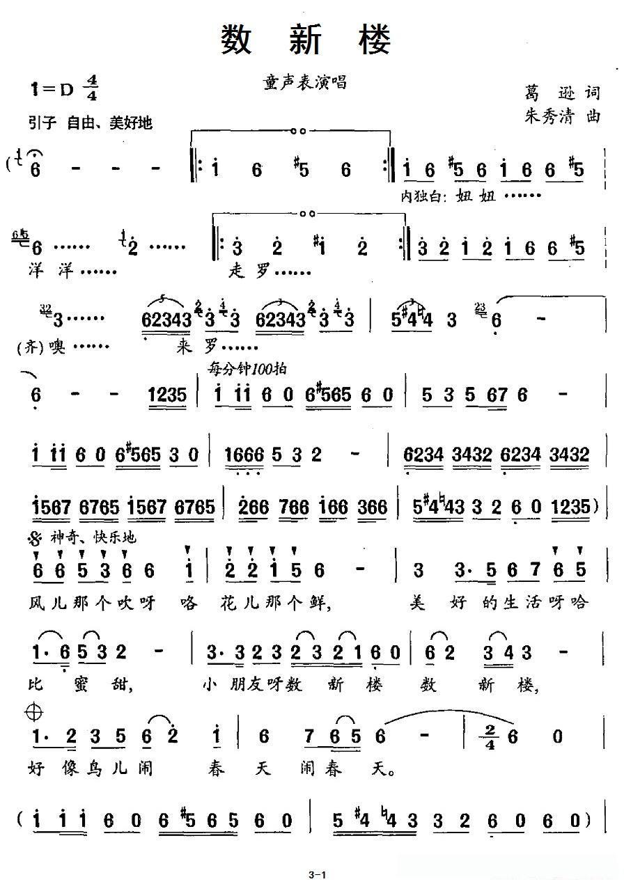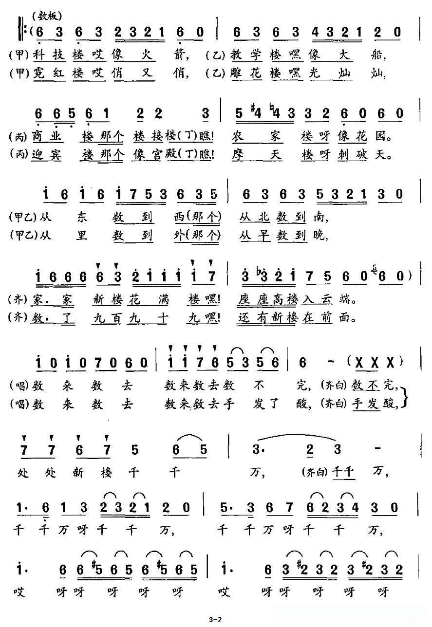 数新楼(表演唱)的简谱歌词