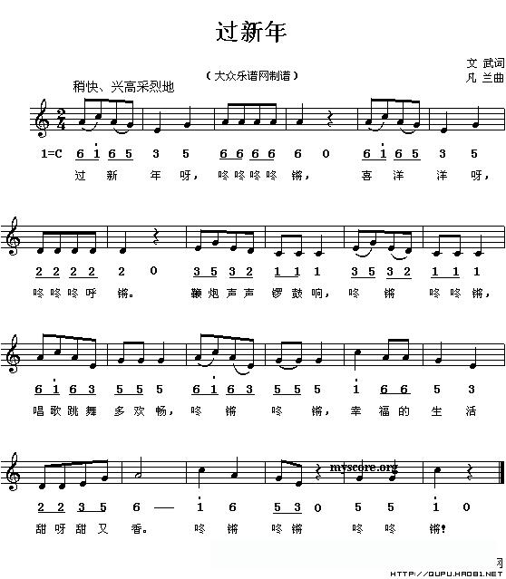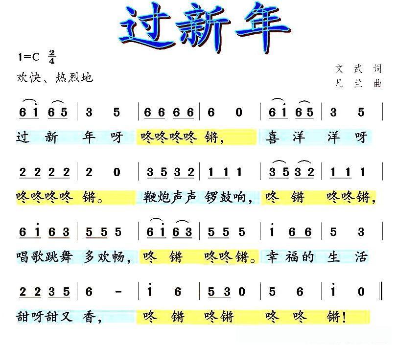 过新年(文武词 凡兰曲 、的简谱+线的简谱混排谱)的简谱歌词过新年(文武词 凡兰曲 、的简谱+线的简谱混排谱)的简谱歌词