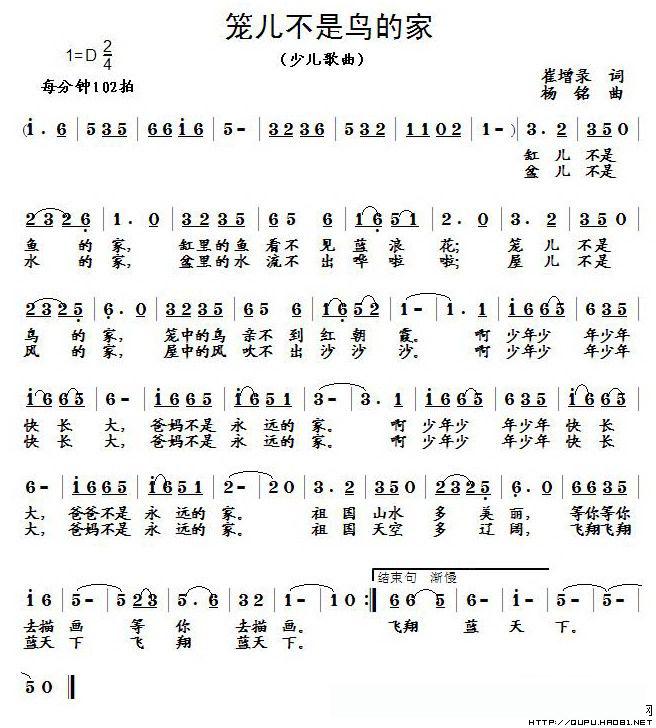 笼儿不是鸟的家(崔增录词 杨铭曲)的简谱歌词