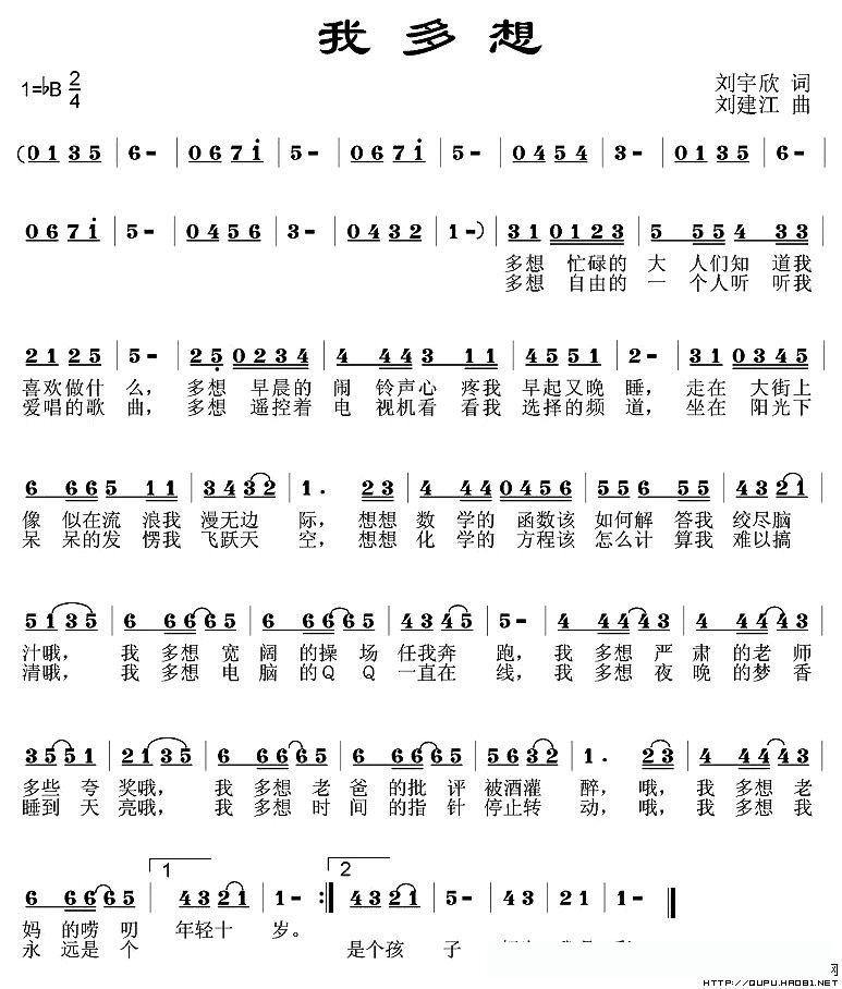 我多想(刘宇新词 刘建江曲)的简谱歌词