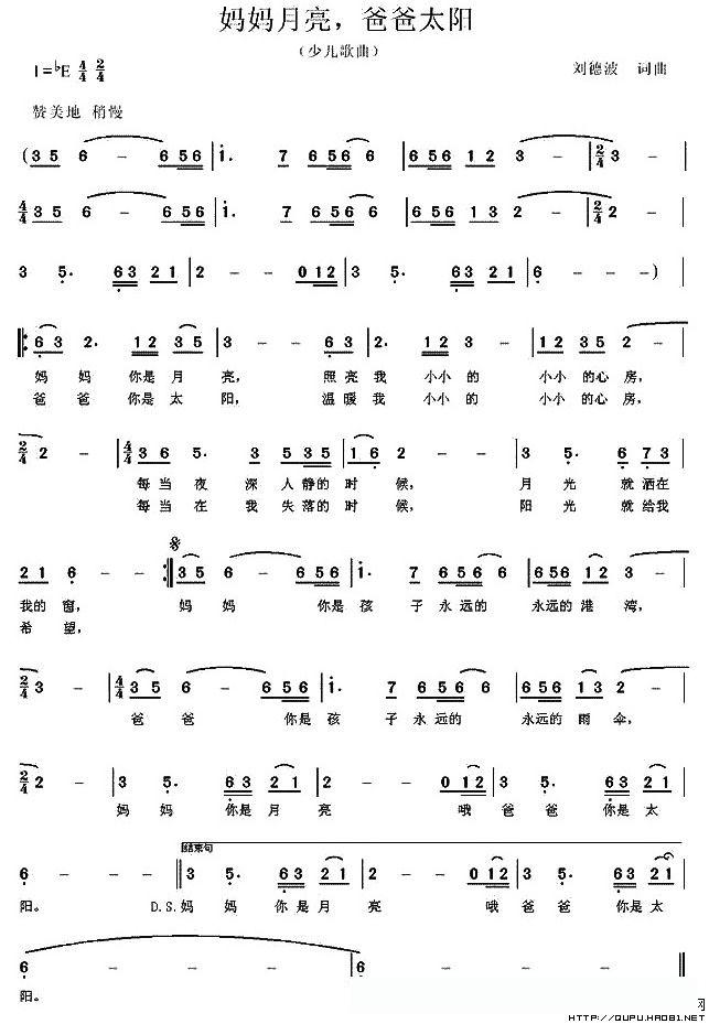 妈妈月亮,爸爸太阳的简谱歌词