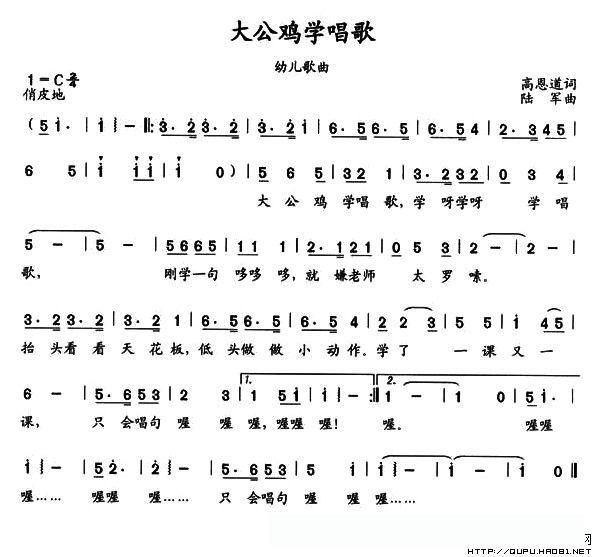 大公鸡学唱歌的简谱歌词