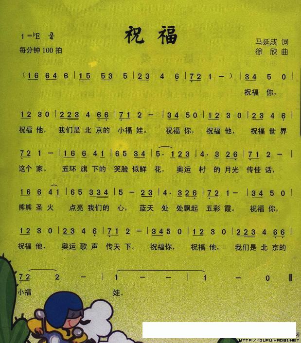祝福(马延成词 徐欣曲)的简谱歌词