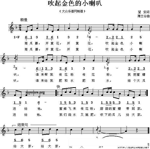 吹起金色的小喇叭(线、的简谱混排版)的简谱歌词
