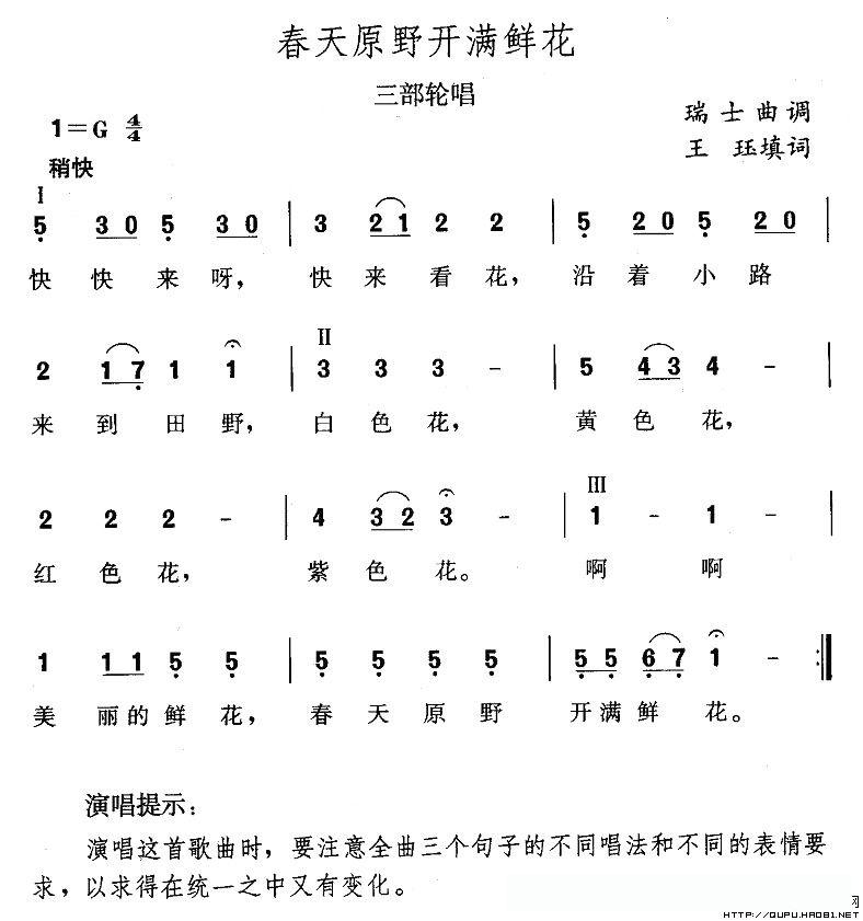 春天原野开满鲜花的简谱歌词