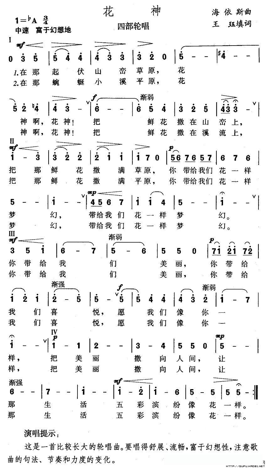 花神(王珏填词 海依斯曲)的简谱歌词