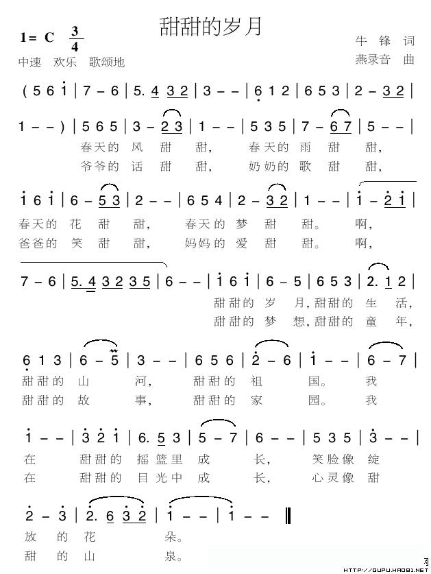 甜甜的岁月(牛锋词 燕录音曲)的简谱歌词