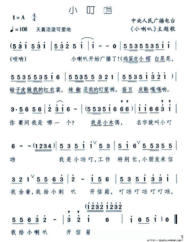 小叮当(中央人民广播电台《小喇叭》主题歌)的简谱歌词