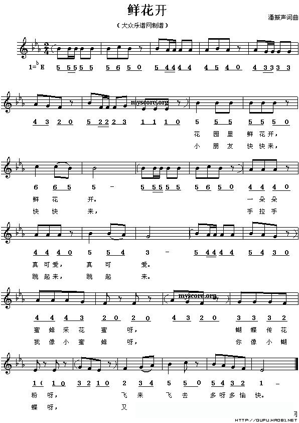 鲜花开(线、的简谱混排版)的简谱歌词