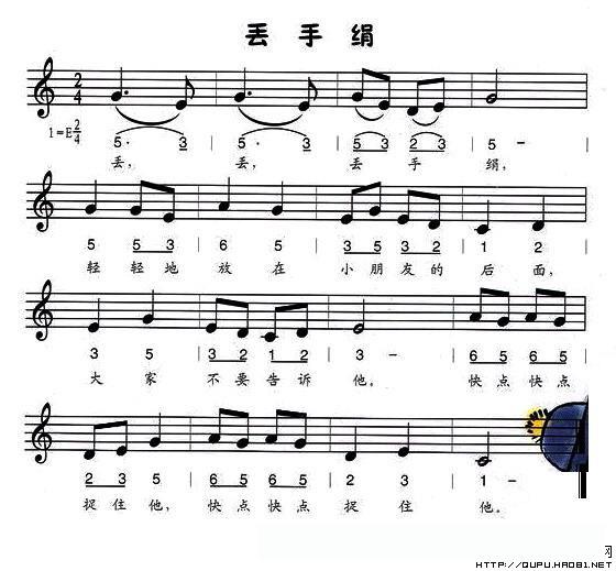 丢手绢(线、的简谱混排版)的简谱歌词