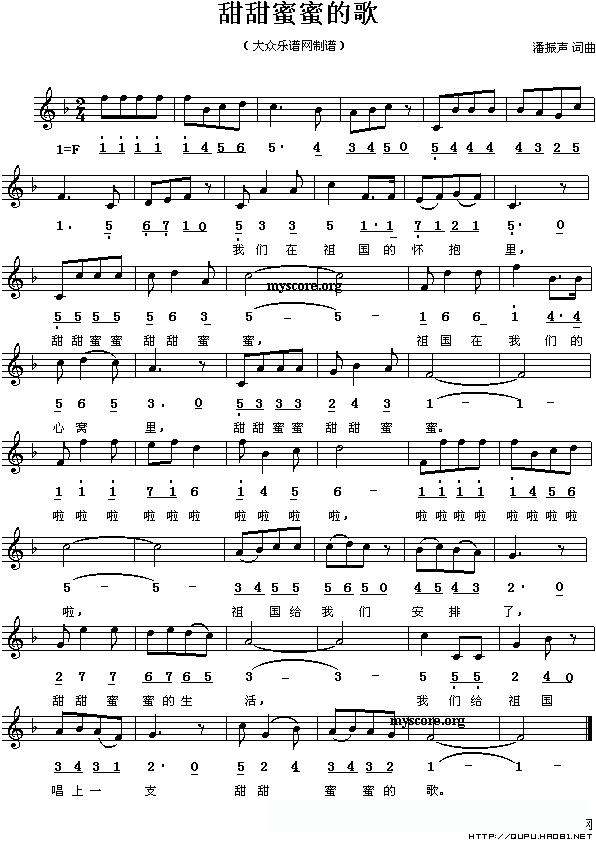 甜甜蜜蜜的歌(线、的简谱混排版)的简谱歌词