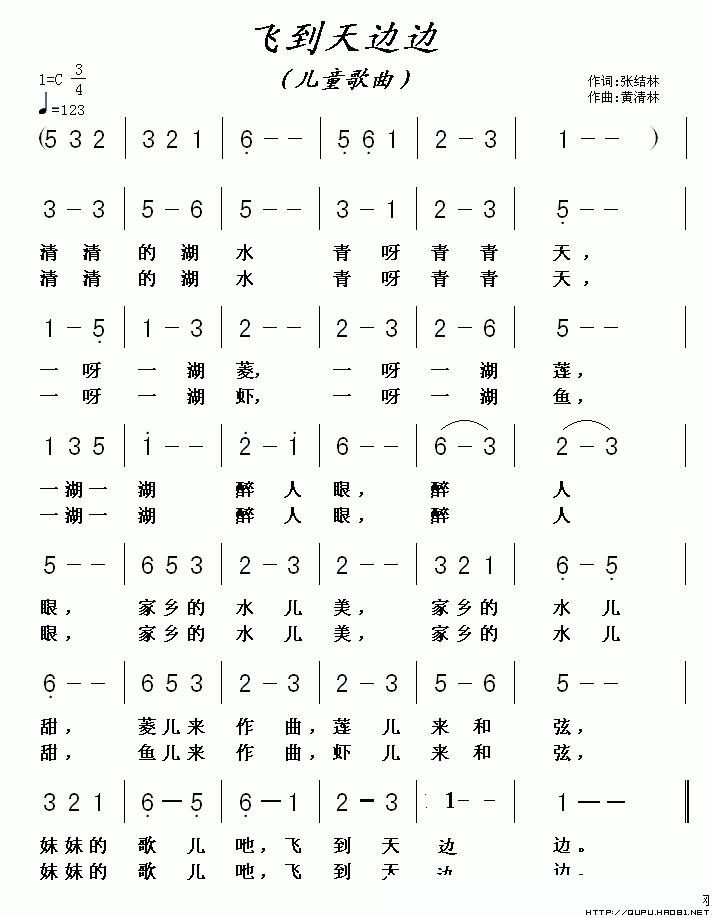 飞到天边边的简谱歌词