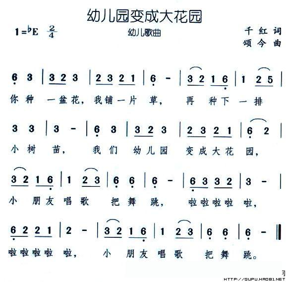 幼儿园变成大花园的简谱歌词