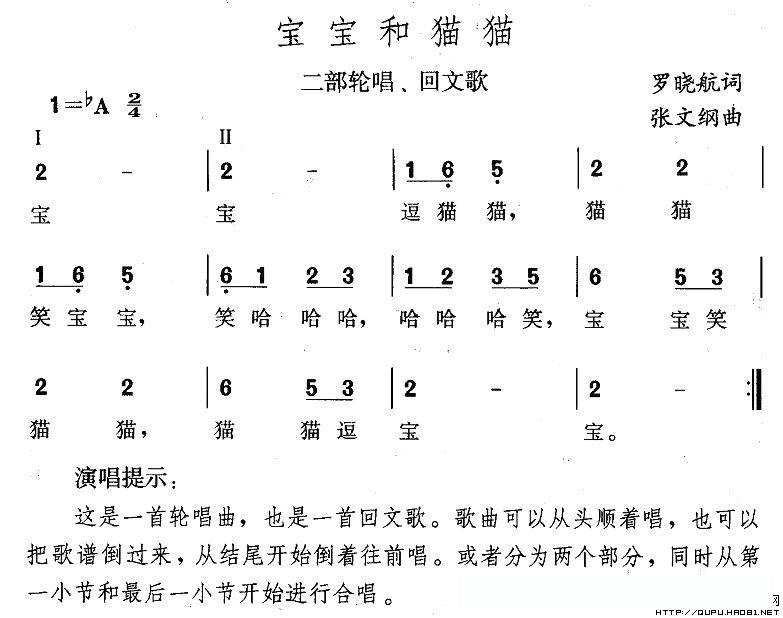 宝宝和猫猫的简谱歌词