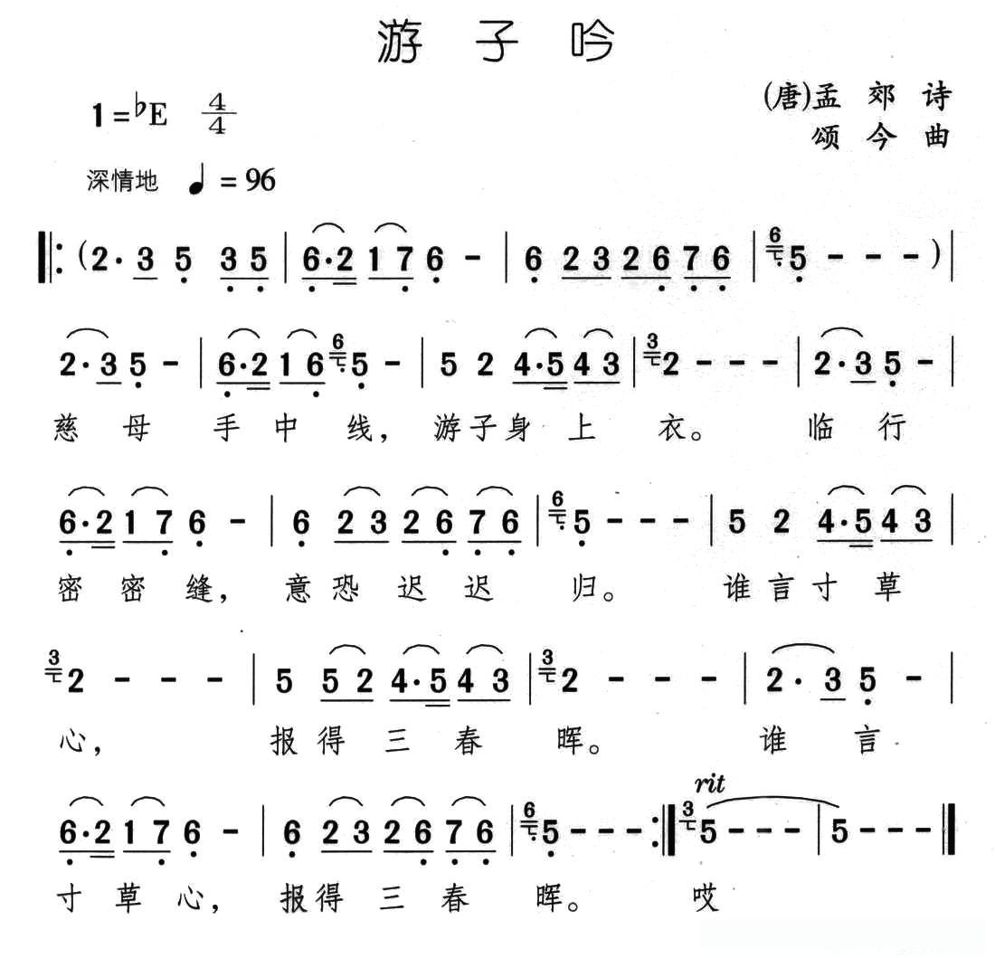 游子吟([唐]孟郊词 颂今曲)的简谱歌词
