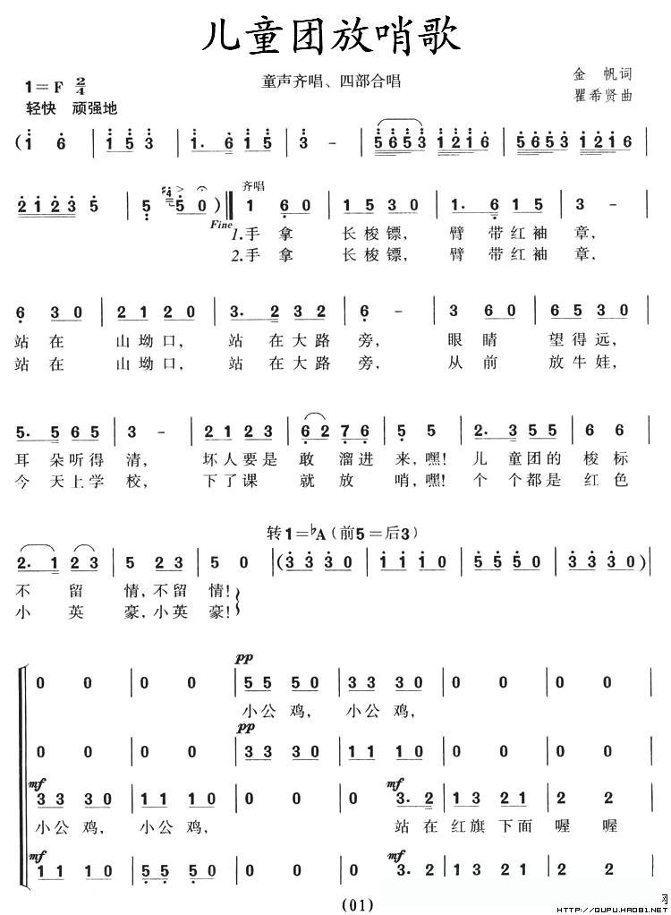 儿童团放哨歌(童声齐唱、四部合唱)的简谱歌词儿童团放哨歌(童声齐唱、四部合唱)的简谱歌词